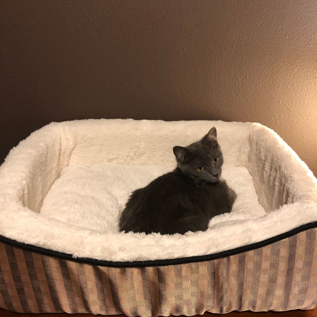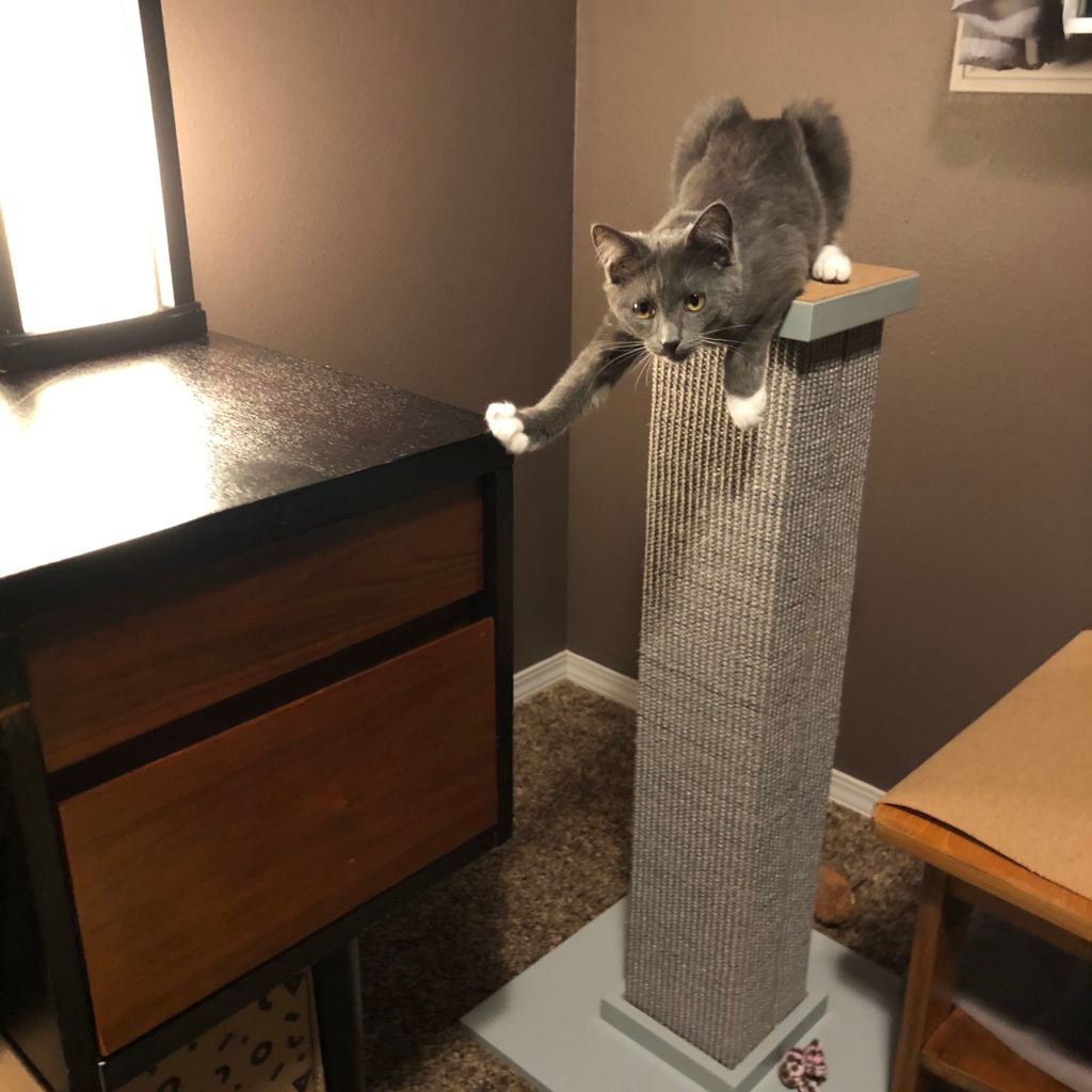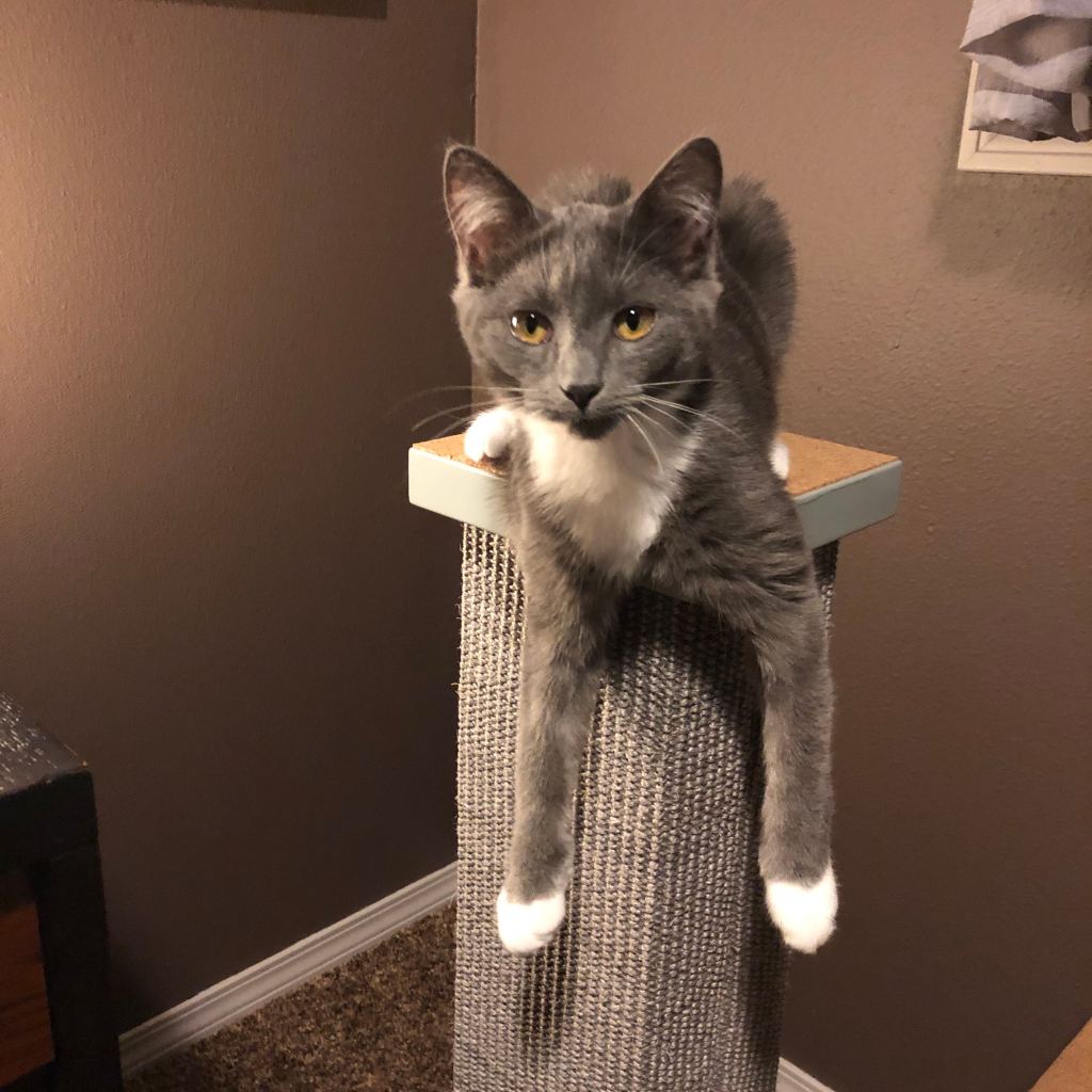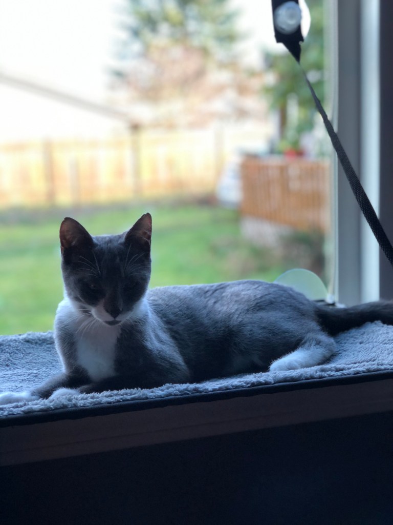 Hanging out in my office while I work, watching squirrels, and finding new nap spots.